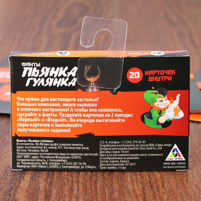 Купить игра для компании "фанты пьянка - гулянка" 20 карт от 80 руб. с доставкой до пункта выдачи в Снежинске. Интернет магазин ДекаМаркет. Оплата при получении.
